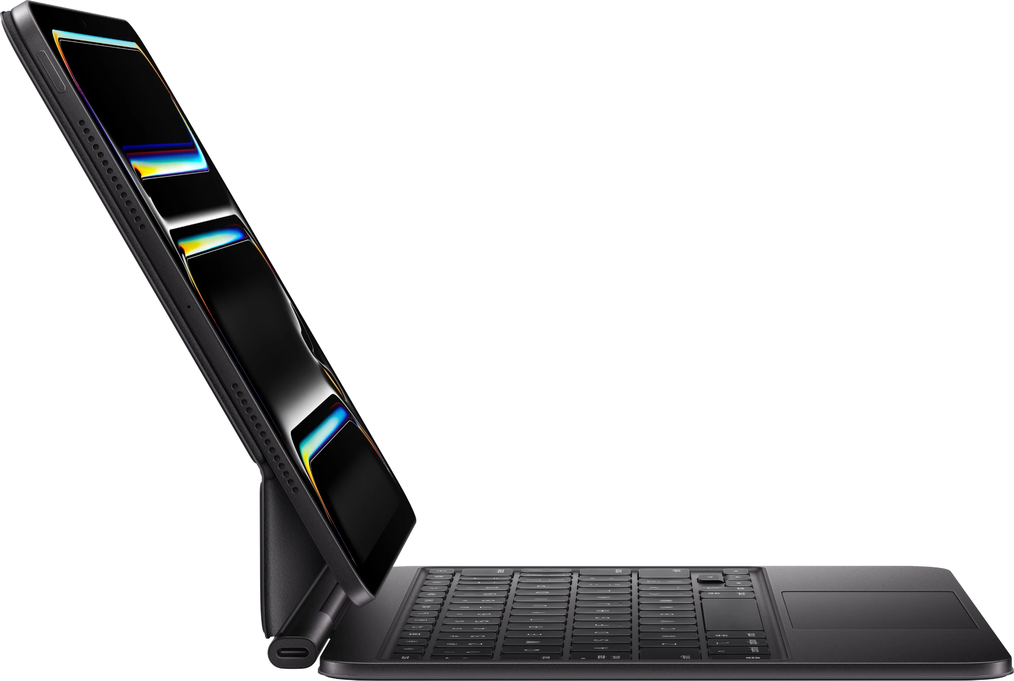 Das Magic Keyboard ist der perfekte Begleiter für das iPad Air. Es hat ein schlankes, mobiles Design und sorgt für ein angenehmes Tippen. Und du hast ein Trackpad, um ganz präzise zu arbeiten. Die Tastatur hat eine Reihe mit 14 Funktionstasten, einen USB‑C Anschluss zum Pass‑Through Laden sowie einen Schutz für die Vorder‑ und Rückseite deines iPad. Das freischwebende Design lässt sich stufenlos an mehrere Betrachtungswinkel anpassen und ein großes Trackpad aus Glas gibt dir neue Möglichkeiten, mit iPadOS zu arbeiten.